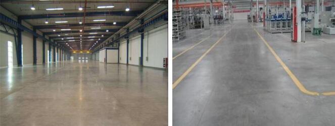 工业厂房金刚砂地坪,与混泥土浇筑工艺同时进行,所以施工工期短,与混泥土粘结性极强,特别适合于重工业厂房,以及叉车频繁碾压的场地,无论叉车如何碾压,不容易出现与混泥土脱层起壳的现象。如果再进行固化剂地坪施工,表面就能达到大理石的亮度,石头的强度的效果,使用年限超过20年。